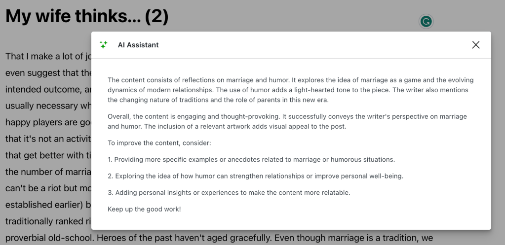 My wife thinks that I tell a lot of jokes, but I’d rather have her laugh with at least one joke a day to validate my pointless skillset.